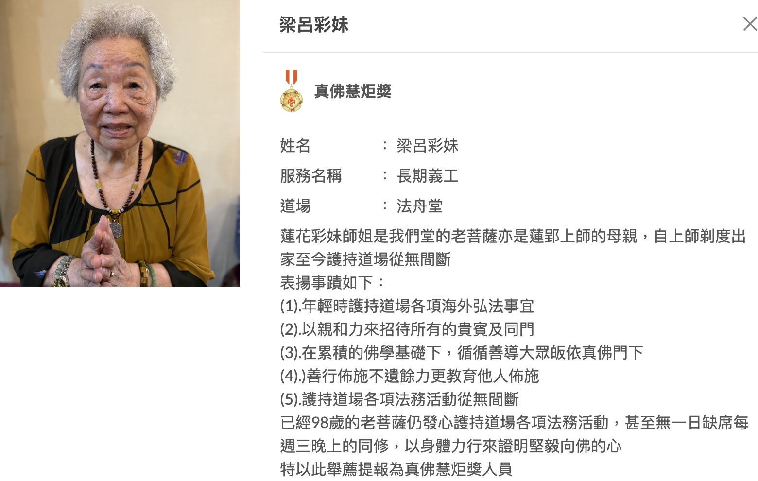 ⁂真佛慧炬獎(今年全宗派僅5位)